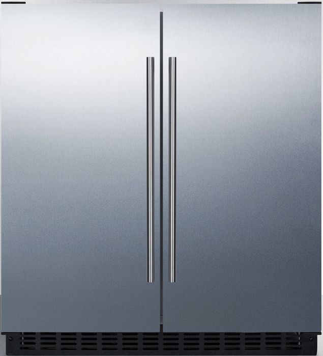 SUMMIT brings quality and value under the counter with the industry’s largest collection of built-in refrigeration. Inside, the FFRF3075WSS features a 2.4 cu.ft. frost-free freezer compartment on the left and a 3 cu.ft. frost-free refrigerator compartment on the right. The refrigerator includes a digital thermostat that can be readable in Celsius or Fahrenheit. Adjustable glass shelves offer cleaner spill-proof storage for fresh food items. The freezer compartment includes adjustable wire shelves to ensure proper cold air circulation. Both sides feature LED lighting to provide an attractive, energy efficient presentation, as well as internal fans. The slotted floor design is ideal for keeping bottles safely in place. Additional features include an open door alarm, high temperature alarm, and Sabbath mode setting that allows you to disable certain functions during religious observance. With its innovative all-in-one design, user-friendly features, and full frost-free operation, the FFRF3075WSS is a great choice for smaller kitchens looking to maximize storage space under the counter.